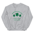 This grey sweatshirt features a "Always Lucky Club" "Faith Hope Love Luck" and three four leaf clovers print at the front. It serves as a charming everyday good luck charm, perfect for any occasion. Crafted with durability and warmth in mind, this sturdy sweatshirt ensures you stay cozy during mild weather.