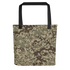 A spacious and trendy camouflage all over print tote bag made from durable and high-quality materials, designed to carry various items and essentials. Featuring spacious and open design, this make our tote bag convenient for everyday use, shopping, or trips to the beach. The camouflage pattern display a sense of urban and outdoorsy vibes, making it a statement piece that complements a variety of outfits, from casual to streetwear-inspired looks.
